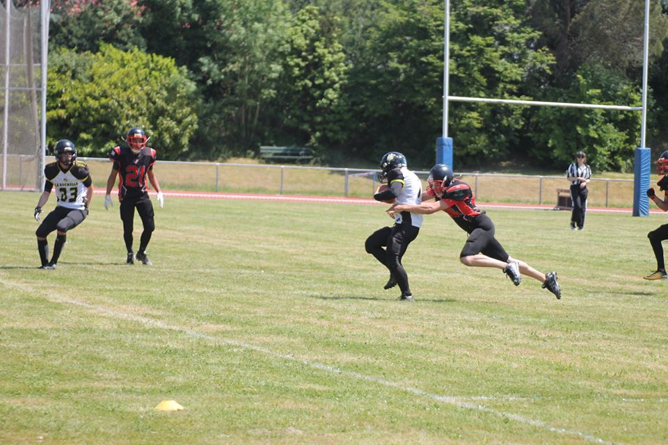 Les Sea Devils arriveront à encore à scorer sur une passe longue, mais les Devils recouvriront la tentative d’onside kick par Charly Matard (CB#84) et poseront le genou sur les derniers jeux du match.