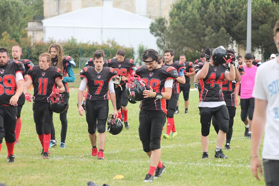 Les Devils commencent en attaque, et après un échange de punts, les locaux scorent les premiers sur une course d’Hugo Antonioli (QB#39), non transformé. Mais les Montois vont justifier leur place de premier au classement en marquant 2 touchdowns avant la mi-temps, sur un long drive conclu à la course (transformé à la course), puis sur une passe à la suite d’une interception dans le camp des Devils (non transformé).