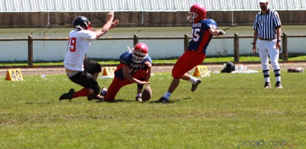 Tout d’abord, le 14 avril, les Devils se déplaçaient à Biarritz pour rester dans la course aux Play-offs. La première mi-temps âpre sera globalement dominée par les biarrots mais la défense Devils plie mais ne rompt pas face aux assauts du toujours dangereux « Mouss », le RB #25. Les Devils réussiront même à prendre l’avantage juste avant la mi-temps grâce à un drive mené tambour battant par l’attaque : Loïc Mlanao (RB #21) marque à la course et la transformation au pied est réussie par Kévin Hourquet (WR/K #87).